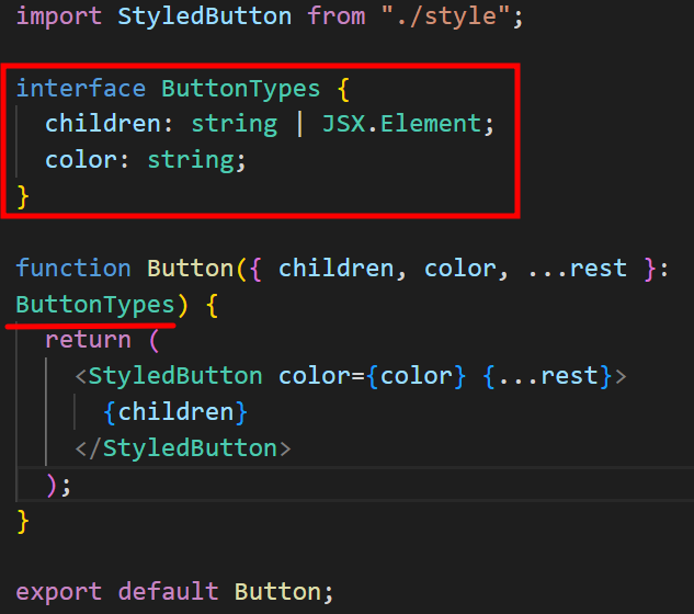 받아온 props color과 children을 또 interface로 타입을 지정해준다.