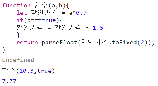 - 가격을 parameter 에 입력하면 10% 할인가격을 뱉는 함수를 만들어보자.